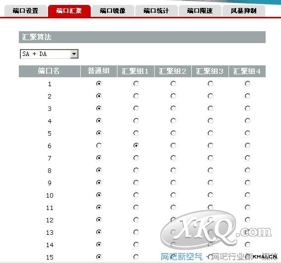 端口名:对应端口的名称 普通组:设置该端口为非汇聚组 汇聚组:设置该端口为汇聚组