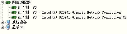 集成的两块网卡都是INTEL 82574L的 安装最新的网卡驱动会自动把INTEL分组的功能集成进去