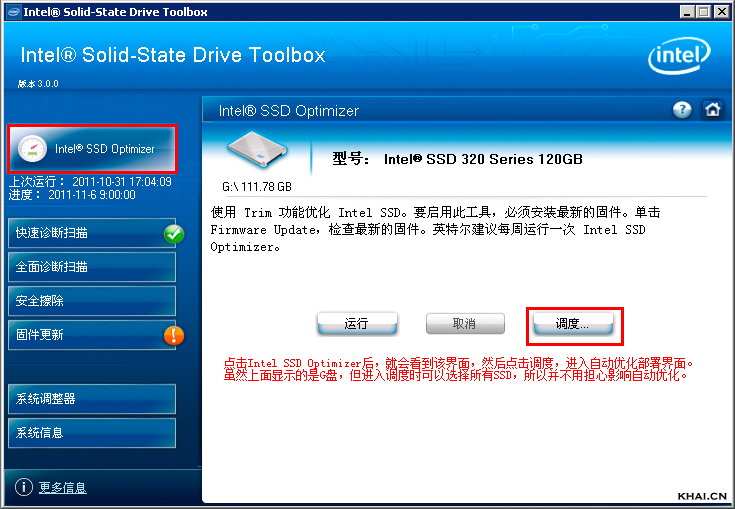 上面的工作都完成后,启动Intel SSD ToolBox,然后在点击红圈中的Intel SSD