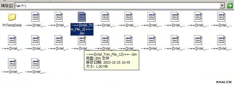 18、使用Intel SSD ToolBox优化固态硬盘时,被优化的分区出现很多--=={Intel_Trim_File_x}==--.bin文件,像下图一样是怎么回事?怎么解决?