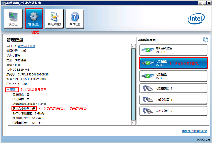 使用intel rapid storage technology的附带工具可以检测是否开启NCQ。