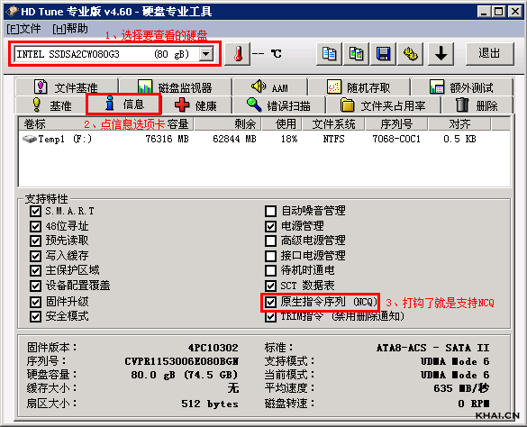 凡是SATA接口的硬盘都支持NCQ功能,因为NCQ本身就是一个SATA接口硬盘具备的一个特点,如果不确定自己的硬盘是否支持NCQ,可以用HDTUNE看下硬盘是否支持NCQ功能。