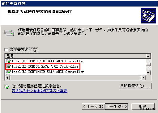 S5500BC系列服务器主板,即便在BIOS中开启了AHCI模式,但是系统安装完成后,仍然是SATA模式,需要手工安装AHCI驱动,并且安装驱动时需要选择:Intel