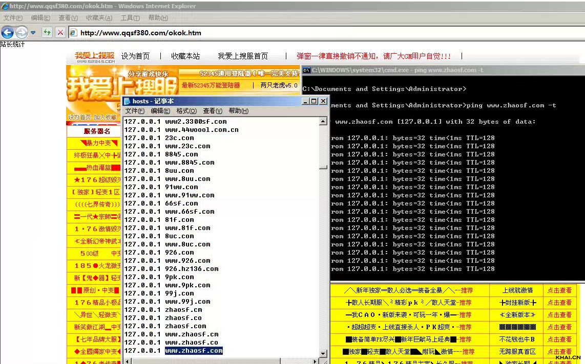 私服劫持(ping 私服网站返回地址是127.0.0.1)、点QQ空间弹出空白页、开机提示cn-zh文件损坏、客户机多出两个svchost.exe进程