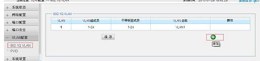 1、创建VLAN,选择802.1Q VLAN,点击右边添加VLAN的“绿色+号”按钮。
