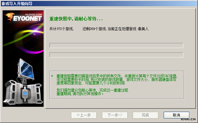 5. 点击“下一步”弹出“重建快照”界面(如下图),重建快照时间视您要导入的游戏数量而定,请耐心等待;