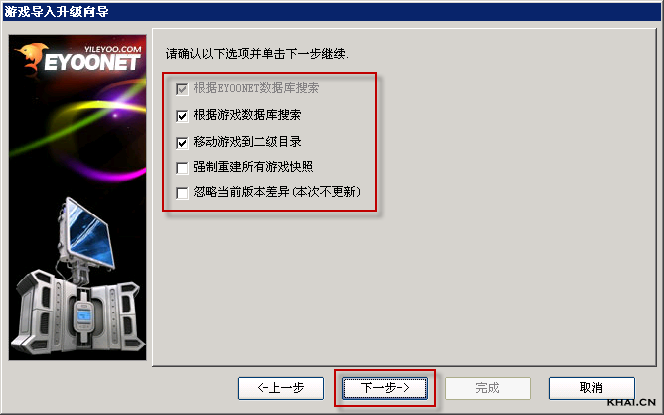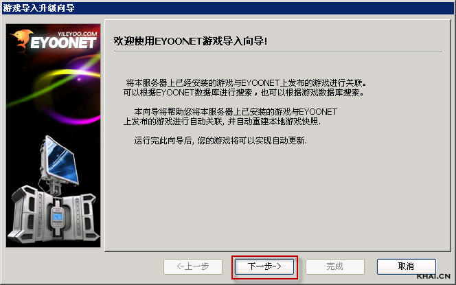 2. 按功能入口的说明点击“导入游戏”,弹出“游戏导入升级向导”,如下图所示;