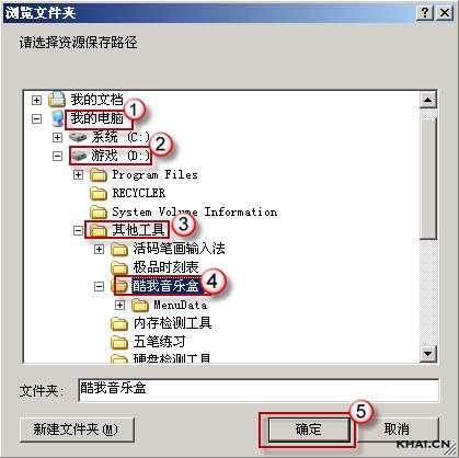 3. 浏览文件夹,找到“酷我音乐盒”保存路径,点击确定;