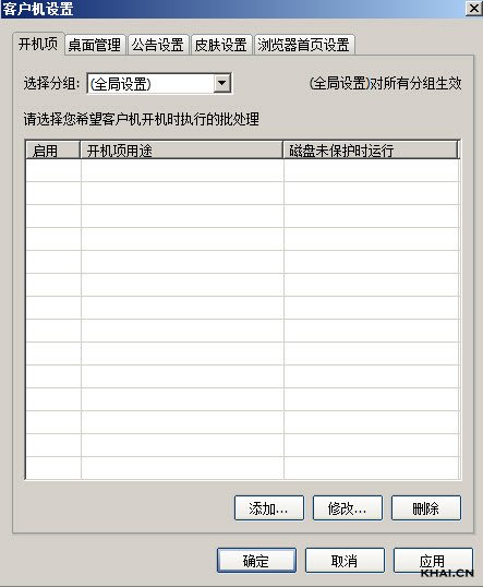 2.选择需设置开机启动的分组,默认为全局设置,对所有分组有效,点击“添加”,弹出开机启动项编辑框,如图: