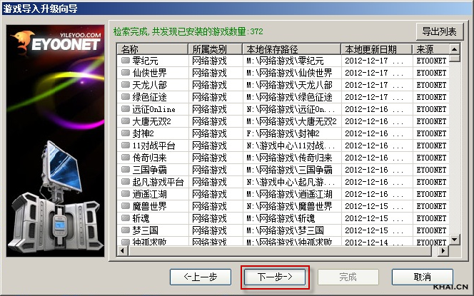 4. 点击“下一步”,弹出检索到的游戏列表界面,如下;
