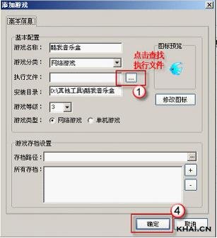 5. 点击确定,弹出如下一图所示的“添加游戏”框,然后点击查找执行文件,弹出如下二图所示的“执行主程序”框,找到执行主程序,点击打开,然后点确定;