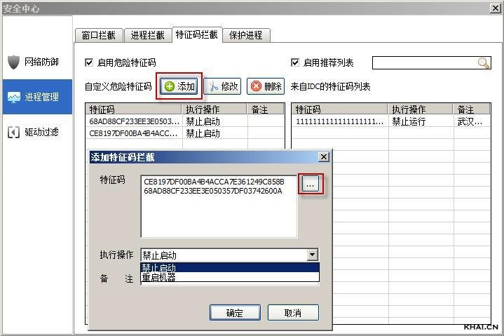 注释:在添加了很多自定义危险特征码的情况下,使用此功能可以迅速的找到已经添加过的特征码,来对它进行修改或删除