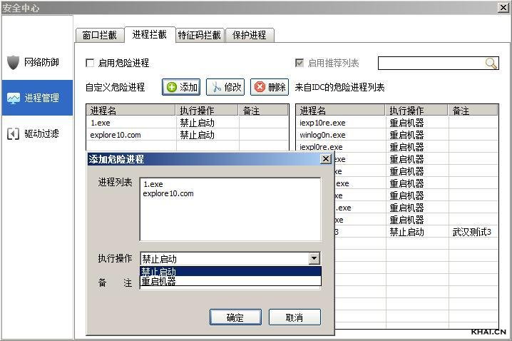 注释:在添加了很多自定义危险进程的情况下,使用此功能可以迅速的找到已经添加过的进程,来对它进行修改或删除