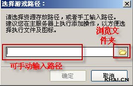 2. 根据功能入口的说明打开添加游戏选项,弹出“选择游戏路径”框(如下图所示),可手动输入路径,也可点击后面文件夹图标浏览文件夹,在这里我们选浏览文件夹;