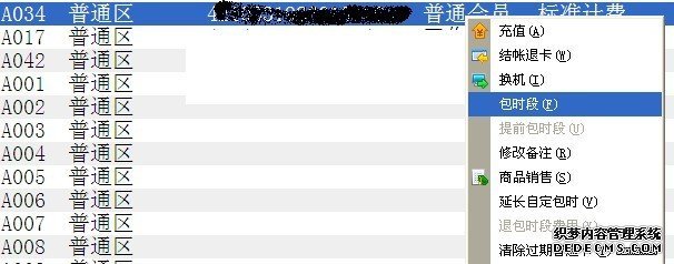 2、会员刷卡上机后,再在收银机上右击会员上的那台机点“包时段”