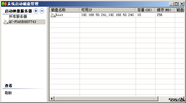 这里正确识别出网卡后,就可以对客户机启动的参数进行设置了。如果只显示出原来网卡的IP地址,请尝试重新启动无盘启动映像服务,并在无盘启动管理器“磁盘管理”中执行“刷新”操作。
