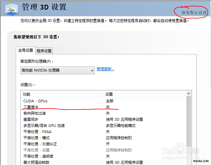 解决方法很简单,恢复显卡默认设置即可,具体是哪一项出现了问题,我自己估计可能与三重缓冲有很大关系,有兴趣的朋友可以自己尝试一下。