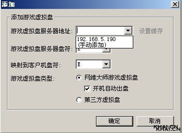 游戏虚拟盘服务器IP地址:如果您已经安装好5.3.0.0或更高版本的游戏虚拟盘服务端,单击后面的下拉箭头即可选择游戏虚拟盘服务器IP地址。