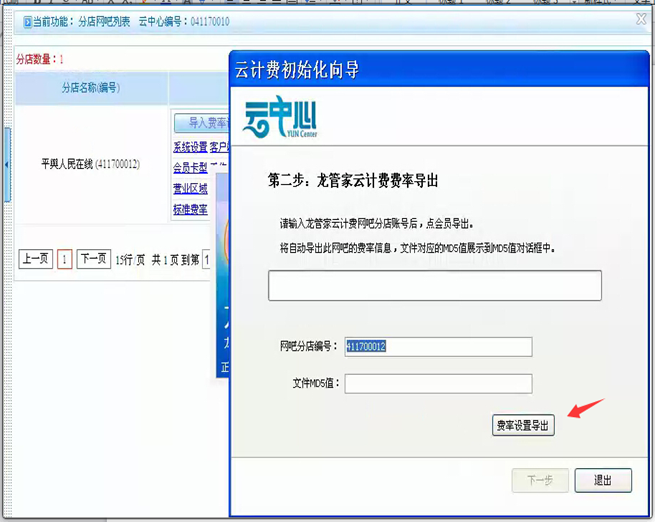 2.点击费率设置导出,导出之后文件MD5值复制出来,记住是费率设置的MD5值。