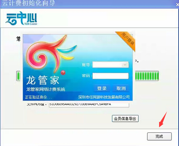 1.直接在普通版龙管家基础上云版本升级包升级,会出现云服务认证界面,然后输入分店编号认证