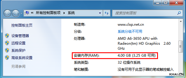虽然客户机的内存越来越大,但是我们发现,网吧用的操作系统多数还是32位操作系统,这就带来一个问题——客户机的物理内存无法充分使用,这是由于32位操作系统的系统特性原因,导致他无法对大内存寻址,以至于无法识别,更无法使用!如下图: